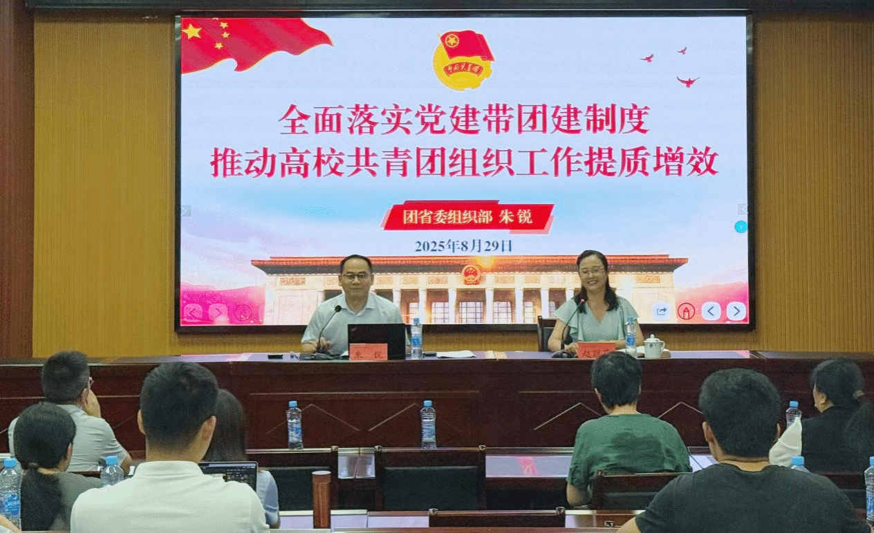 为深化我校“党建带团建”工作,切实提升团干部及辅导员队伍的理论水平和业务能力。8月29日,共青团江西省委组织部副部长、二级调研员朱锐应邀为我校专兼职共青团干部、辅导员及新生班主任,作题为《全面落实党建带团建机制,推动共青团组织工作提质增效》的辅导报告。