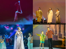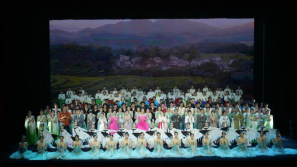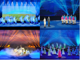 整场演出在《寻踪彭蠡》中拉开帷幕,引领观众穿越时空,追寻鄱阳湖千年踪迹。《鄱阳湖赋》以铿锵语调与恢宏舞台再现湖域之浩渺、气韵之宽广;《暗香·疏影》——姜夔“梅”之主题随想还原南宋音乐家姜夔千年前创作的回响,勾勒出一幅水墨诗境。伴随《瓦屑坝上》悠远旋律,现场仿佛重现千万移民脚踩层层瓦砾,牵衣顿足远离家乡的图景。中篇《大泽洪汛》《战洪记忆》以磅礴叙事与激烈舞段,再现古今赣鄱儿女防汛抗洪、劈波斩浪的英勇身姿;《鄱湖咏叹》歌咏大美鄱湖,在歌声里听见渔舟唱晚,在舞姿中看见候鸟归洲;《吴城号子》复现“一声号子起,千帆过吴城”的繁荣景象,舞动吴城水运传奇,引发阵阵掌声。下篇《湖上草原》以灵动编排展现鄱阳湖生态多样性与自然之美;《川流不息》回顾江水人如水滴般汇聚力量,在江河湖海间奔涌向前,助水利丰碑巍然屹立;《远来的鹤》通过优美舞蹈语言,讲述人与自然和谐共生的动人故事;《五江春水》意象开阔,喻示江西水脉绵延、润泽万物;终曲《因你而美丽》情感真挚、节奏昂扬,将全场气氛推向高潮,也为整场演出画下温暖而有力的句号。