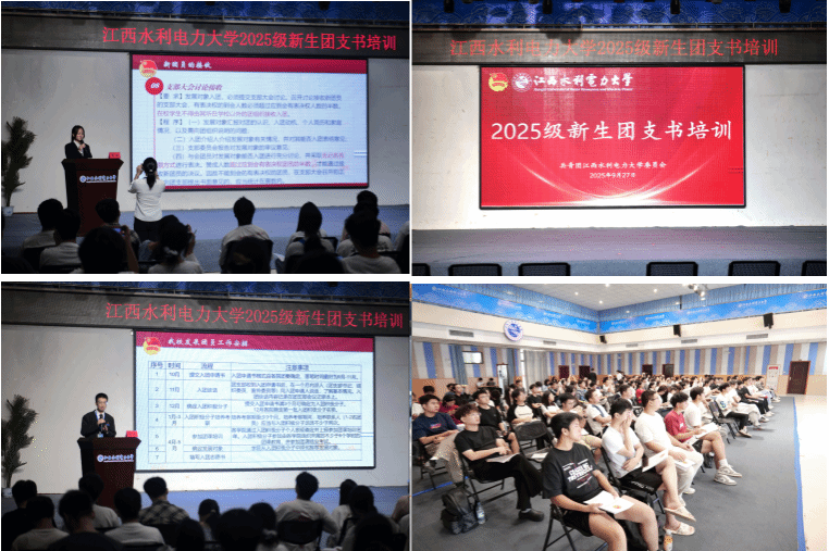 2025年9月27日,江西水利电力大学2025级新生团支部书记培训班在大学生活动中心一楼多功能厅顺利举办,2025级新生团支部书记共计80余人参加。本次培训由团校和学生团工委组织部共同组织开展,旨在系统提升新生团支书理论水平与实务能力,加强基层团组织建设。