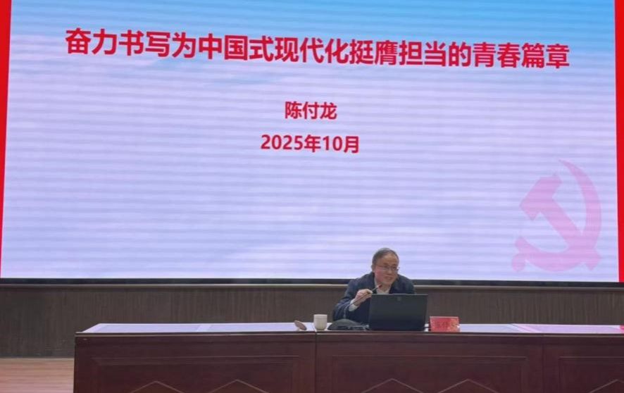 陈付龙教授结合党的二十届四中全会精神,从习近平总书记关于青年工作的重要论述、“五个时间维度”的大变局、当代中国青年生逢其时、强国建设需要青年新作为、齐唱“三支歌”等方面,系统回顾了不同时期青年的担当,阐释了新时代青年发展的良好环境。他勉励青年学生要深刻认识国家在推动高质量发展、实现科技自立自强等目标中的责任,要在唱响国际歌中坚定理想信念、在高唱国歌中展现强国建设当“燃”有我的担当、在唱好校歌中养成博学善思的习惯,努力成长为有理想、敢担当、能吃苦、肯奋斗的新时代好青年。