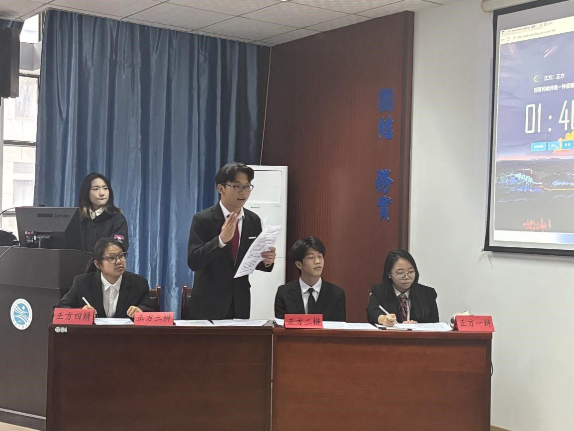 本次表演赛的辩题为“短暂的陪伴是一种恩赐还是惩罚”。比赛正式启幕前,主席依赛制程序介绍了正反双方辩手。在开篇立论环节,双方一辩围绕辩题内核展开架构,通过理论与实例相结合的论证方式,清晰阐述了本方立场与论证框架,为后续环节奠定学理基础。
