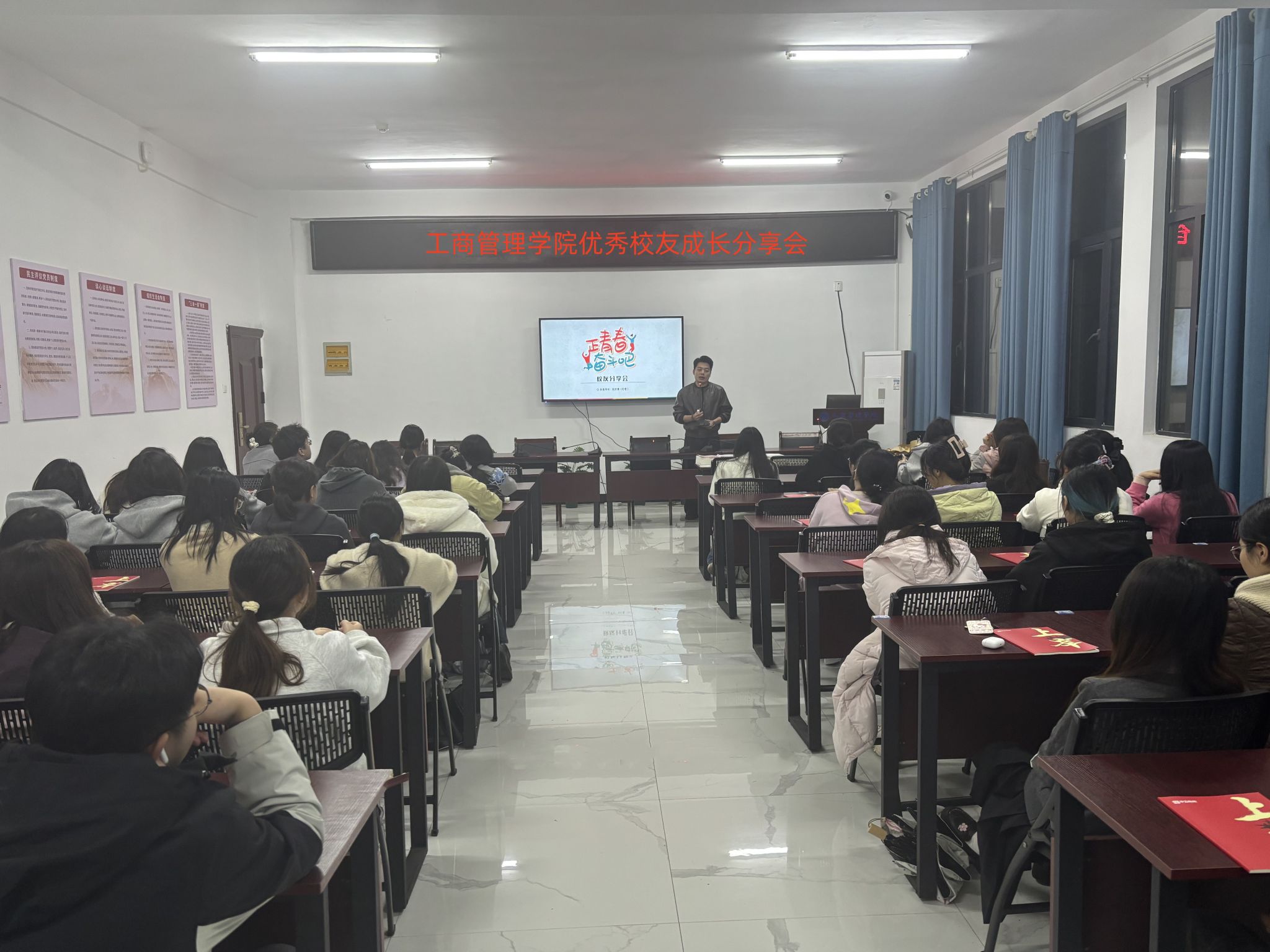 活动现场气氛活跃。针对学弟学妹们关心的在校成长规划问题,刘天昊校友结合自身经验,给出了贴合学生实际的成长建议。通过校友分享会,同学们不仅对就业、创业的机遇与风险有了更深刻的认识,也明晰了择业的方向及找准了自身成长的发力点。(文/图 王翊安)
